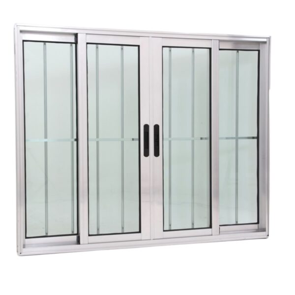 Janela de Vidro 4 folhas de Alumínio Brilhante com Grade – Premium