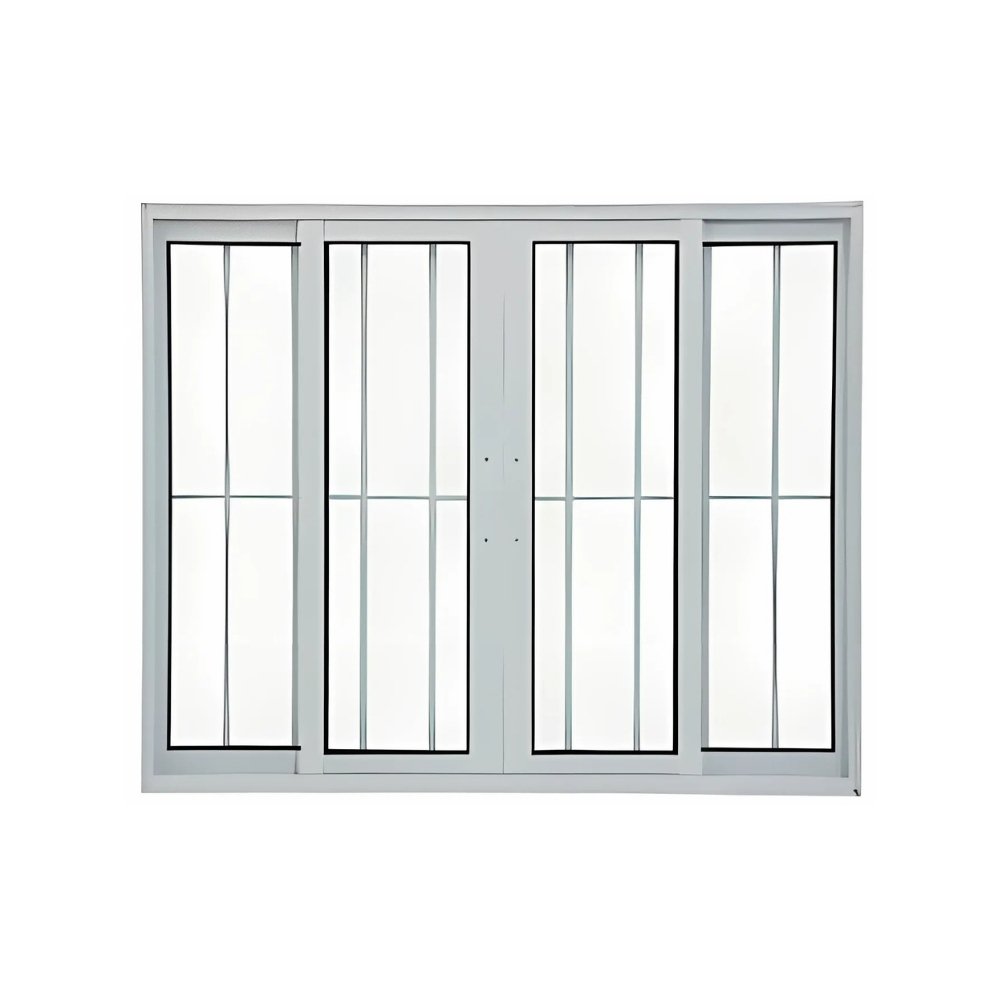 Janela de Vidro 4 folhas de Alumínio Branco com Grade – Premium
