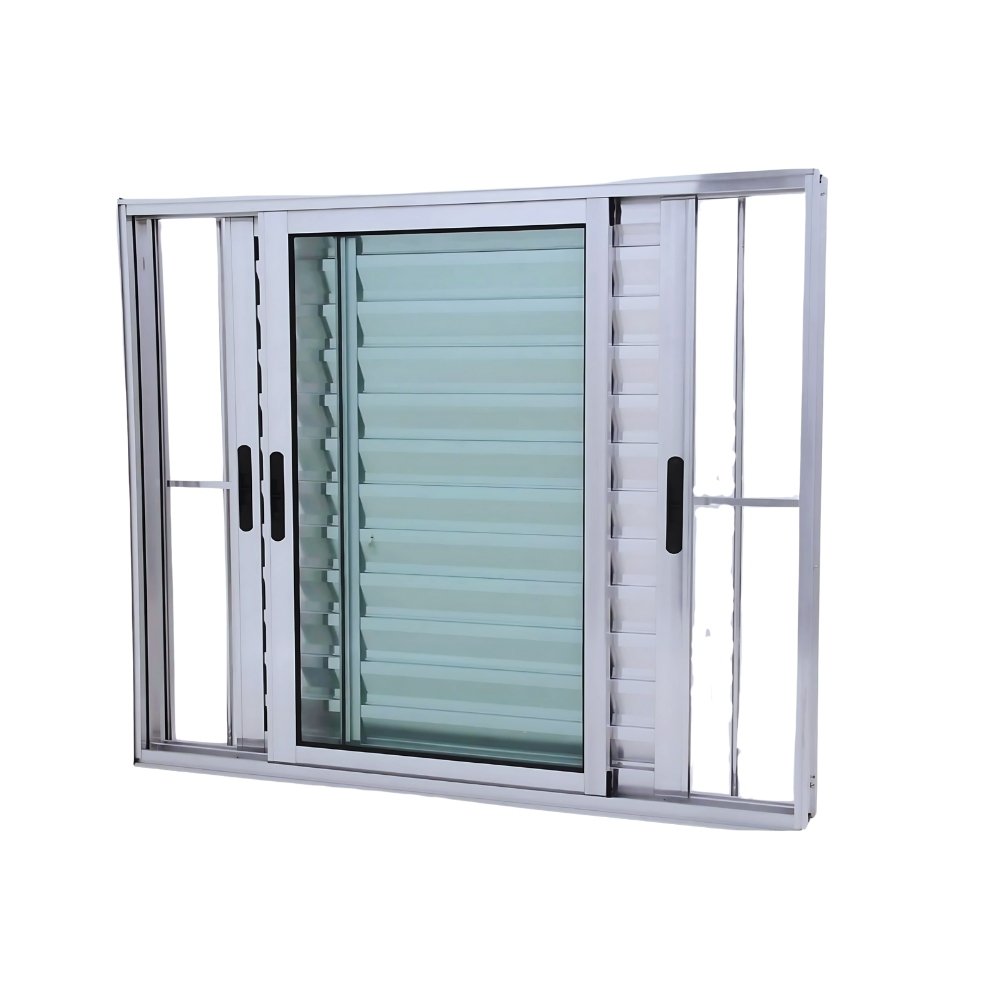 Janela Veneziana de Alumínio Brilhante de 3 folhas Móveis com Grade – Premium